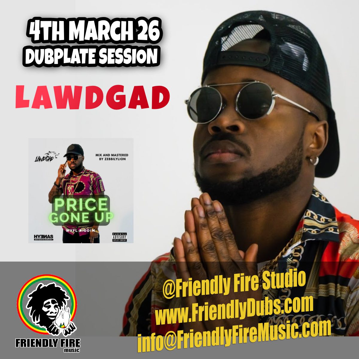 https://www.youtube.com/playlist?list=PL0706B9CD4FB4181F FRIENDLY FIRE DUBPLATESOrder a DubplateJOIN THE MAILING LISTEMAIL USInstrumentals RecordingsMixing / RemixingFriendly Dubs ArtistsUPCOMING DUBPLATE SESSIONS Al CampbellEric Monty MorrisSizzla KalonjiLAWDGADCheshire Cat DUBPLATE SESSIONS ARCHIVE UPCOMING SESSIONS19Feb 26Al CampbellBook a session20Feb 26Eric Monty MorrisBook a session26Feb 26Sizzla KalonjiBook a session04Mar 26LAWDGADBook a session Tweets by Friendly_Dubs JAM JAH SOUND DUBS View this post on Instagram A post shared by Friendly Dubs Dubplate Studio (@friendlydubs) Links FRIENDLY FIRE MUSIC LABEL JAM JAH SOUND